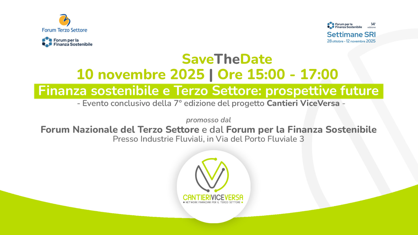 “Finanza sostenibile e Terzo settore: prospettive future”. L’evento conclusivo di Cantieri Viceversa, il 10 novembre a Roma