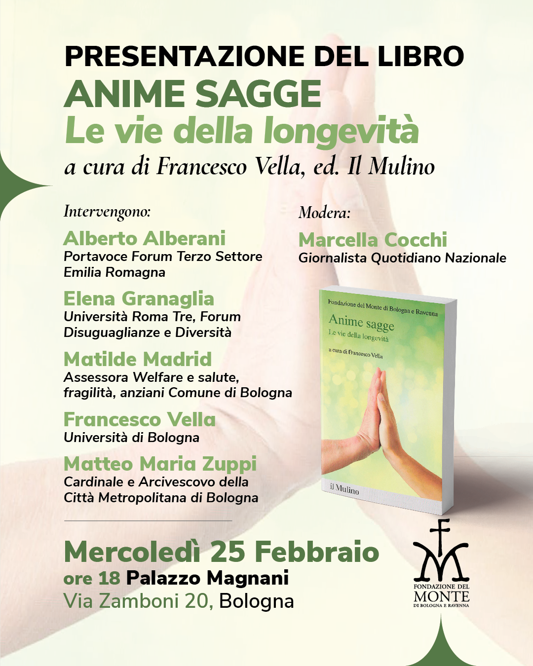 Mercoledì 25 febbraio alle ore 18:00, a Palazzo Magnani, l’incontro di presentazione del volume curato da Francesco Vella Anime sagge (ed. Il Mulino). Insieme al curatore interverrà il Portavoce del FTS ER Alberto Alberani.